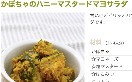 重たくなりがちなかぼちゃサラダを、さっぱりと仕上げています。かぼちゃの中で玉ねぎのシャキシャキ感がアクセント。醤油と砂糖の甘辛さにお酢の酸っぱさが加わり、ヤミツキになりそうなおいしさです。甘さが苦手な場合は、砂糖を減らして。