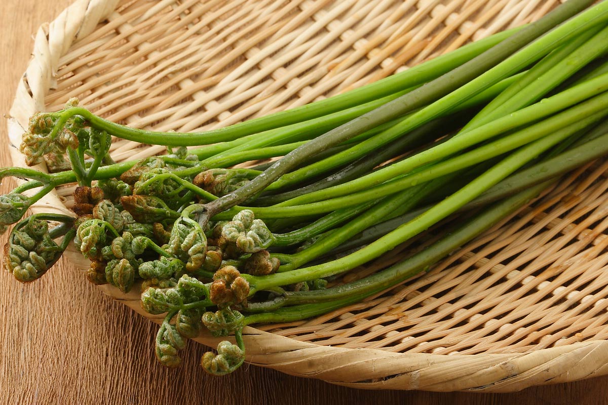 わらびは茎が太く、ポキリと簡単に折り取れ、若葉が開く直前のしっかり巻き込まれているものを選びましょう。わらびには、β-カロテンやカリウム、食物繊維、ポリフェノールが含まれています。