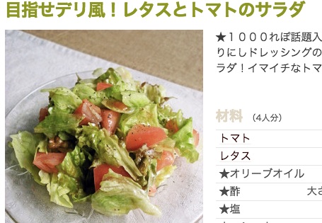 トマトをさいの目に切ってドレッシングの具にすれば、デリ風のサラダ♪ オイルをタップリ使いましょう。トマトとレタスは食べる直前に和えて、タレはかけるのではなく混ぜあわせるのがポイントだそうです。